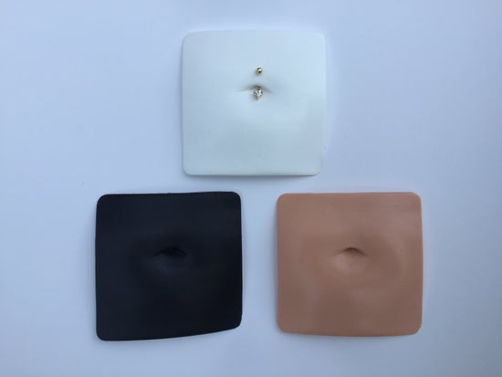 Our belly button model is made for jewelry designers and artists, whether making belly button jewelry or drawing out a design for ideas or tattoos. Jewelry designers can pierce the model and insert the belly button jewelry and/or artists can use our model to draw out ideas with markers and then rub off the design and reuse.
